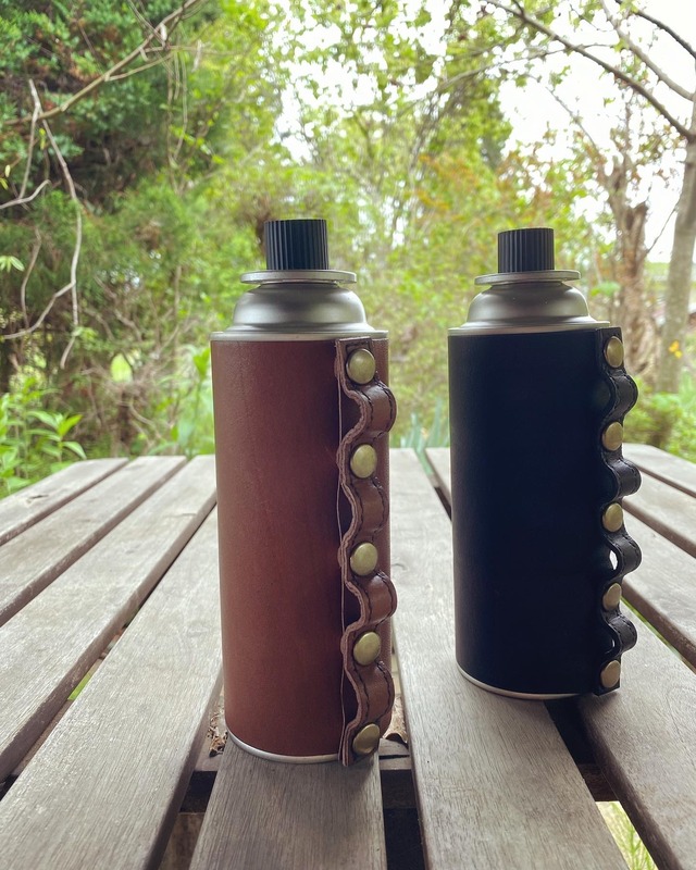 お手持ちのCB缶(ガス缶)に くるりと巻きつけて、 パチパチっと留めるだけで とっても素敵な格好に大変身のカバーです。 ハリのある国産レザーを使用しておりますので 使うほどに艶が出て味わい深くなります。 いくつものループが付いていますので、 S字などに引っ掛けてお使い頂いても。 アウトドアで、こだわりの空間を作るお手伝いに おすすめの商品です。 *送料込みの価格です