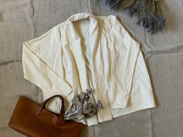 山梨県富士吉田市の前田源商店さんの 国産オーガニックコットン素材の たっぷりシルエットのカーディガンです。 ふんわり柔らかな生地は 身に纏うととても気持ちが良くて 優しい気持ちになります。 このカーディガンは たっぷりとした襟周りが特徴で 2重に折って使うのですが この部分があることで少し寒い時期には 襟部分を立てて、ストールのように首元を温めたり 暑い時期には首の後ろの日焼け対策に とても便利です。 袖口はロールアップして着るのも 表情が出ておすすめです。 胸元のたっぷりの折り込みは 胸元上でとめており、そこからふんわりとしますので 女性らしいシルエットになります。 試行錯誤してやっと ここまでの形になってきたカーディガンです。 是非お試しください。