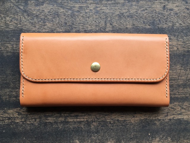 三つポケの長財布です。 中は蛇腹で三つのお部屋があります。 真ん中のお部屋には内ポケットが一つ付いています。 ガバッと大きく開くので見通しがよく 使い勝手もいいです。 コインは落ちないかとよく聞かれますが、 1番奥のフラップ側に小銭をずっと入れて使っておりましたが 一度もコインがこぼれたり落ちたりすることは ありませんでした。 革は栃木レザー。植物タンニン鞣しのヌメ革です。 艶があり、張りもある素材です。 お使いいただくうちに、味わい深く色も手触りも 変化していきます。 hiyoriでは初期からずっと使わせていただいている革で 同じ素材でポーチやポケット、トートバックなど 多くの商品をお作りしていますので、 素材を合わせてお使い頂くことも出来ます。 サイズ 約18センチ × 9センチ × 2.5センチ *価格は送料込みの価格です。 *hiyoriの商品は一つ一つ手作業でお作りしておりますので、革の伸び具合等の関係上、サイズに若干の違いがございます。ご了承くださいませ。 *hiyoriの商品では、革の個性(牛さんそれぞれの、ほくろ、シミ、小さい傷等)はデザインに響かない程度にあえてそのまま使っています。その殆どは、使い込むうちに色が濃くなり、気にならなくなるものだったり、唯一無二のデザインの一部としてご理解頂けるくらいのものです。完璧なお化粧を施された革を使用しておりませんので、革の個性としてご理解頂ければと思います。気になるようでしたら、お問い合わせ頂くことも可能ですし、店頭にて直接ご覧いただくことも出来ます。