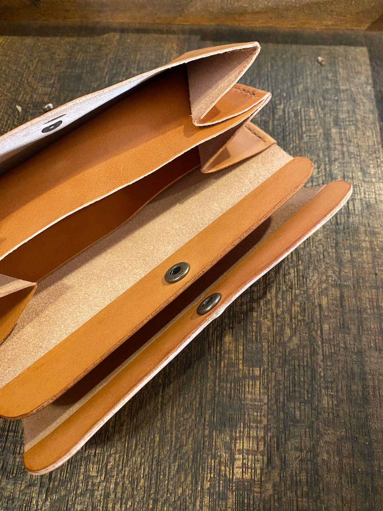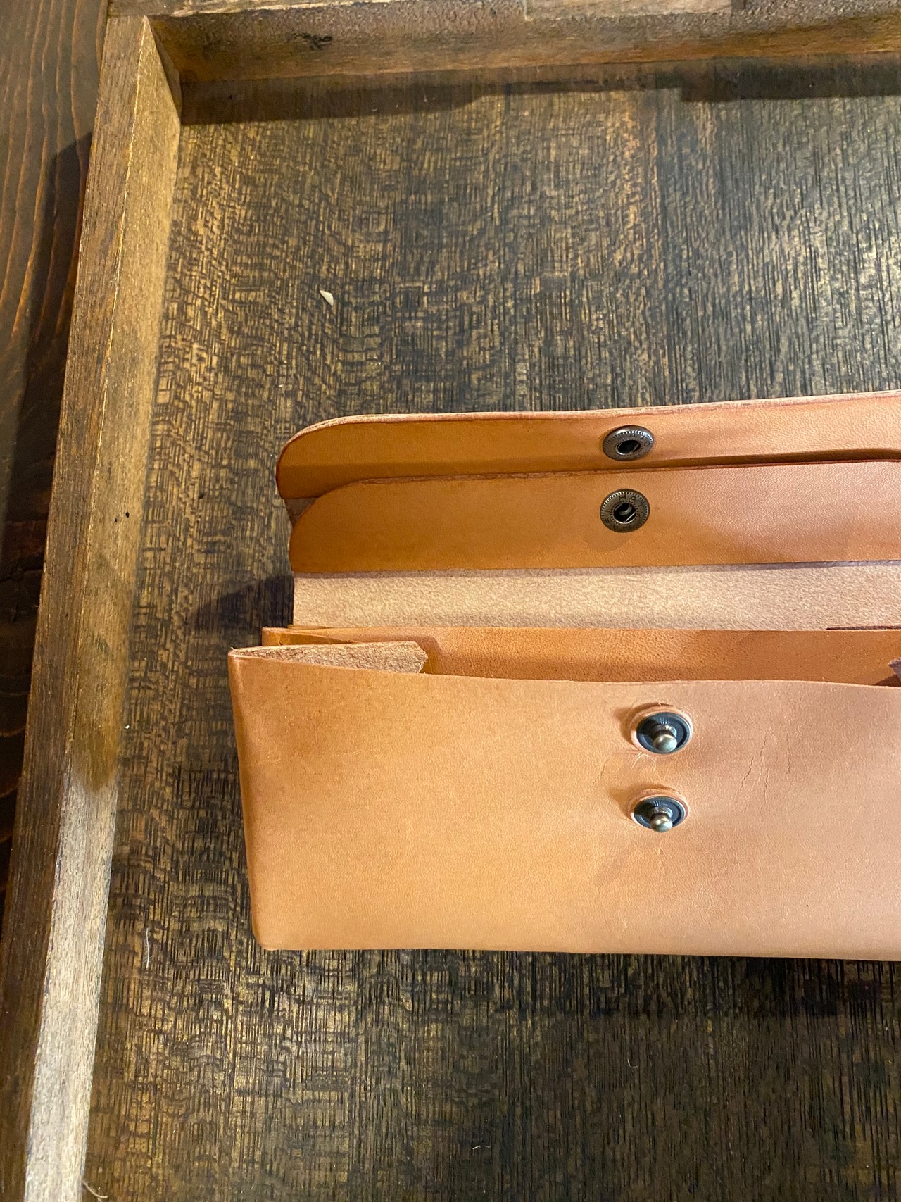 革は栃木レザー。植物タンニン鞣しのヌメ革です。